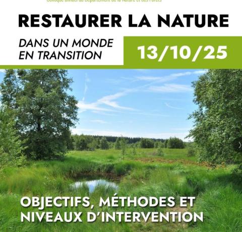 Under the initiative of the Department of Nature and Forests, the symposium “Restaurer la nature dans un monde en transition - Objectifs, méthodes et niveaux d’intervention” will take place on 13 October 2025 as part of the Festival International Nature Namur.